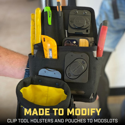 Customize your tool belt with Holstery tool pouches. Lightweight and tough organisers to carry essentials and streamline your work setup.